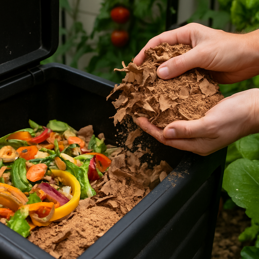 Fazer compostagem doméstica no apartamento é o segredo para nutrir sua horta vertical de forma sustentável, economizar em adubos e